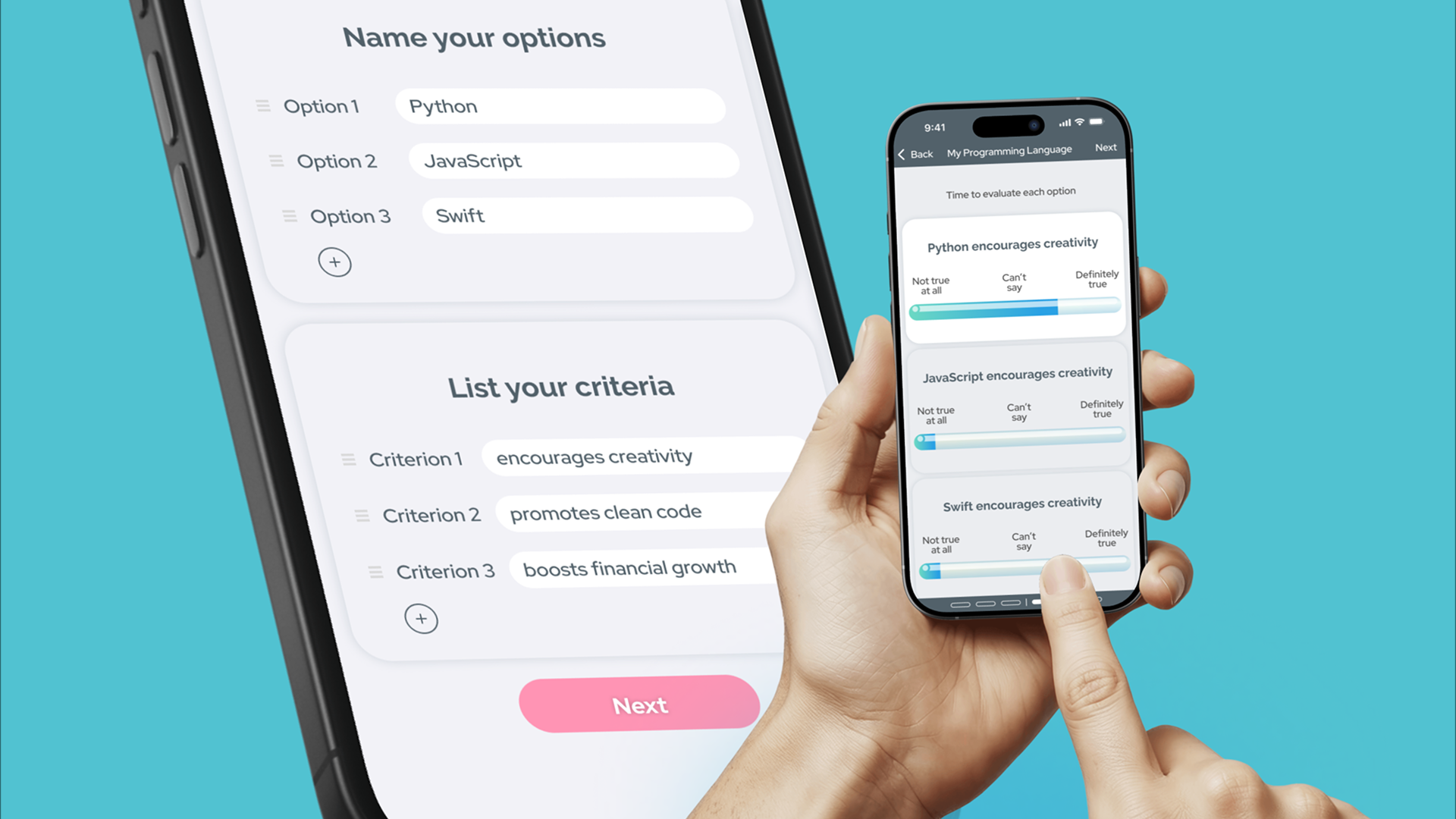 Designed and coded decision-making tool applying strategic methodology to product UX. Built Figma prototype with animations and working bolt.new version where users input custom data and get calculated results.